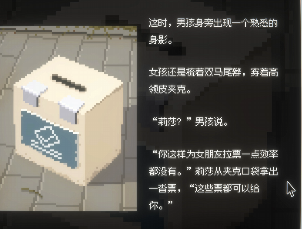 巴特、行李箱、篮球;阿普、胖子、画作、轮椅;莉莎、双马尾、金钱……在这个故事中登场的人物基本都没有正面的立绘,只有档案式的文字对其进行了描写,但在一次次阅读与归纳关键字之后,你行走至地图上的对应地点,只是简简单单的对场景和人物关键字进行联想,你的脑海里便会浮现出一段独属于你的,依照文字展开的联想——这是其他注重表现力与画面的文字游戏所无法给你提供的“畅想自由”。