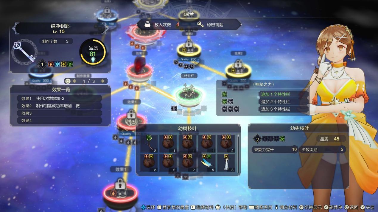 系列最核心的炼金调和系统方面,DX版则很聪明地没有对这套深邃的系统进行大刀阔斧的简化或统一,而是完整保留了每一代的进化特色。从一代基础的属性环,到二代改变规则的“香精”,再到三代集大成的“钥匙”系统,即便是追求极致体验的硬核玩家,也能不断地在这套规则下收获新的惊喜。对于休闲玩家,贴心的“一键投入”和清晰的指引也能让你轻松享受炼金创造的乐趣。总的来说,莱莎系列的炼金玩法门槛低,上限也高,一直以来都广受好评。