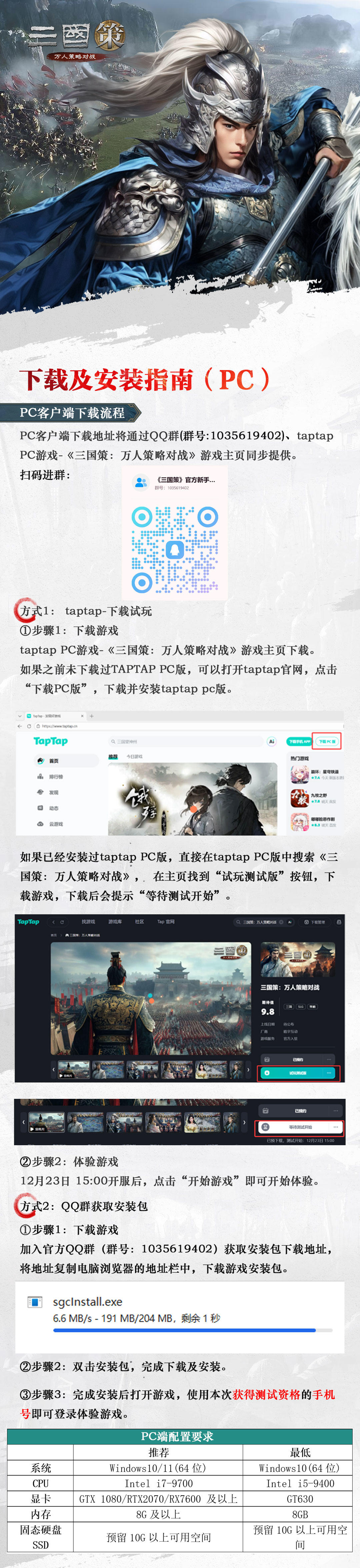 3.我们为大家整理了客户端下载与安装的方法,各位主公可以根据自己参与测试的设备,打开图片查看对应的说明哦~