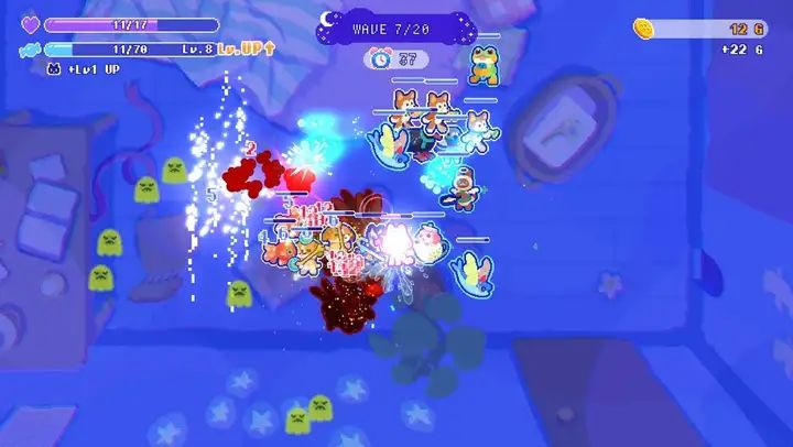 这次他们的新作品《月下梦景》可以归为类吸血鬼幸存者式的,只不过在形态上做了些发散式创新——咱们操作的主角其实就只是个战场OB型指挥官(?),您需要做的全部就是不断走位保持其血量健康,如果倒了这波就直接失败可还行。而布偶则各司其职,发挥了T、DPS、治疗的作用,需要靠他们去应对四面八方涌来的敌人。布偶们本身也存在着血量值,被攻击命中血量会降低,而归零后会消失等待一定时间再复活。所以不要有任何心理负担,就躲在布偶背后、将它们当成最坚固的城墙吧。
