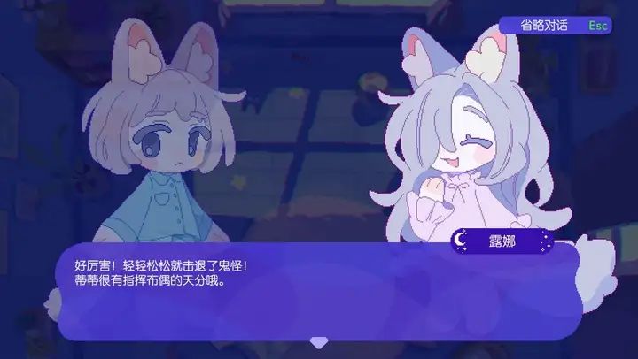 值得一试的作品为了说明战斗的合理性,《月下梦景》有做了相对完备的设定。咱们的主角蒂蒂晚上完全睡不好,总有鬼怪侵扰梦境——嗯作为一个资深恐怖片爱好者,我立马就联想起《猛鬼街》的弗莱迪,和下楼伽椰子堪称同一档次的存在,曾经给相当多的同学造成了很大阴影。不过本作并没有对这部分过于强调,可爱氛围很好的冲散了这一点。反正直接快进到奇怪的少女露娜登场,在露娜指引下,蒂蒂开始对抗起鬼怪来,而其所仰赖的自然就是各种拥有神奇力量的布偶了。