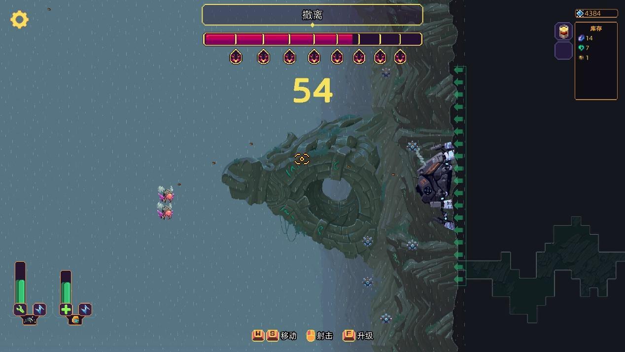 如果你体验过《墙世界1》,那么你一定会知道这款游戏的开局到底有多难受,不仅仅是人物性能低到发指,就连作为载具的蜘蛛机器人也移动速度慢的飞起,战斗体验也是一坨…那个机枪转速能再慢点吗?而且完全没有一丁点的自动攻击手段,这些问题想必是不少玩家共同的心声,来到二代内制作组在序章内就为玩家展示了他们的成果。