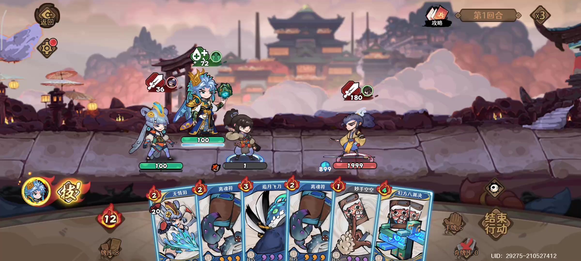 明枪暗箭(离魂符+离魂符)--墨海渊技能--幻方八面决--虚无无情泪--明枪暗箭(追月飞刀+暴雨梨花针)--无情泪--冰心诀--浪涛式--暴雨梨花针--无情泪--阴阳符--明枪暗箭(离魂符+武当绵掌)--飞刀--飞刀--暴雨梨花针--冰心诀--明枪暗箭(追月飞刀+追月飞刀)--幻方八面决--虚无无情泪--明枪暗箭(离魂符+离魂符)--选择2号位--无情泪--冰心诀--浪涛式--例无虚发--暴雨梨花针