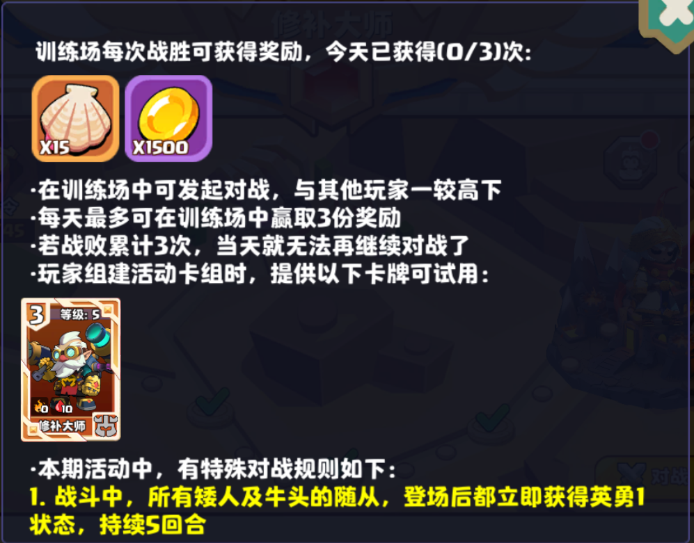 挑战玩法共有5个关卡和1个活动限定对战模式,通过每个关卡都能拿到对应的贝壳(活动积分)。
