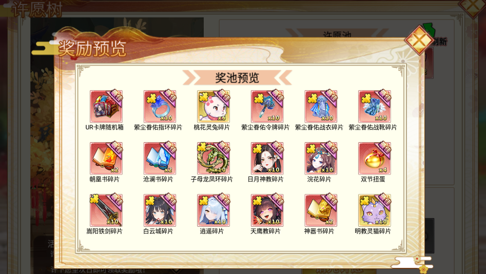 另外需注意:许愿树最后一天,仅为领取前一天许下的奖励,这一天即使许下奖励,也无法再第二天领取。