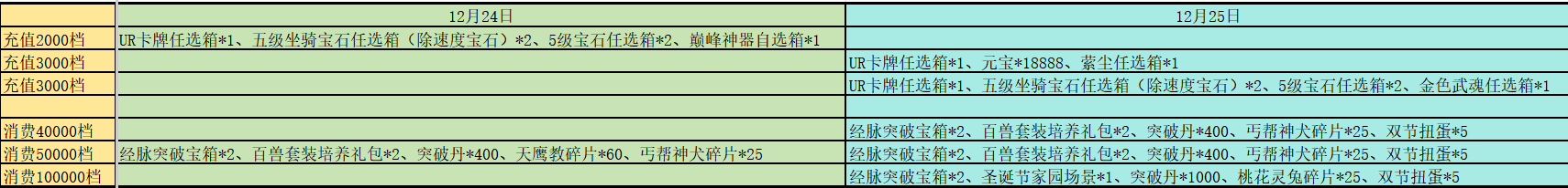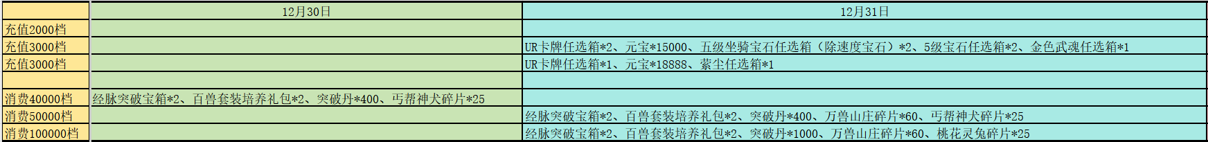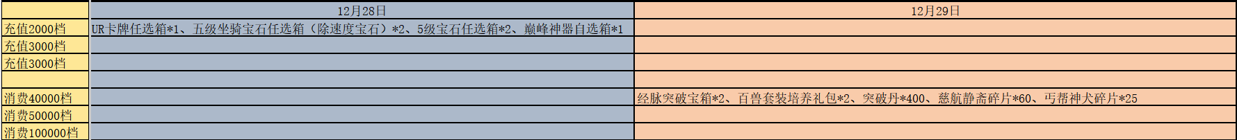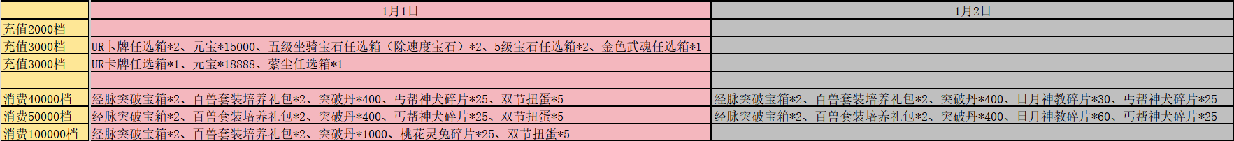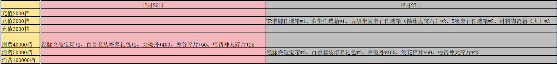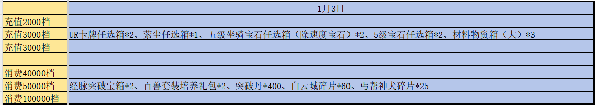 除了上述的轮换活动外,每日的累计充值与累计消耗也有新增变动,具体可查看下方图片,以下新增皆为活动期间增加:
