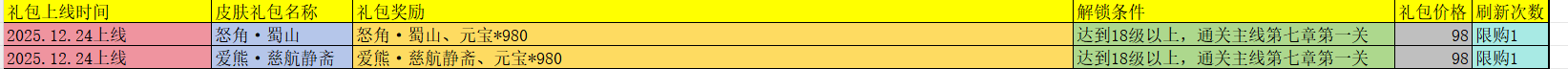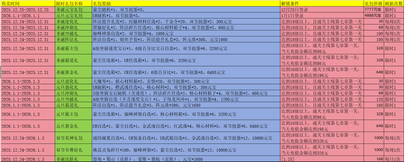 活动期间限时礼包: