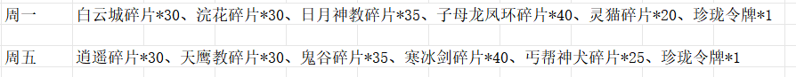 1月3日的华山之巅,当期武娘调整为万兽山庄、天鹰教、白云城,累计消耗所给的武娘碎片为白云城