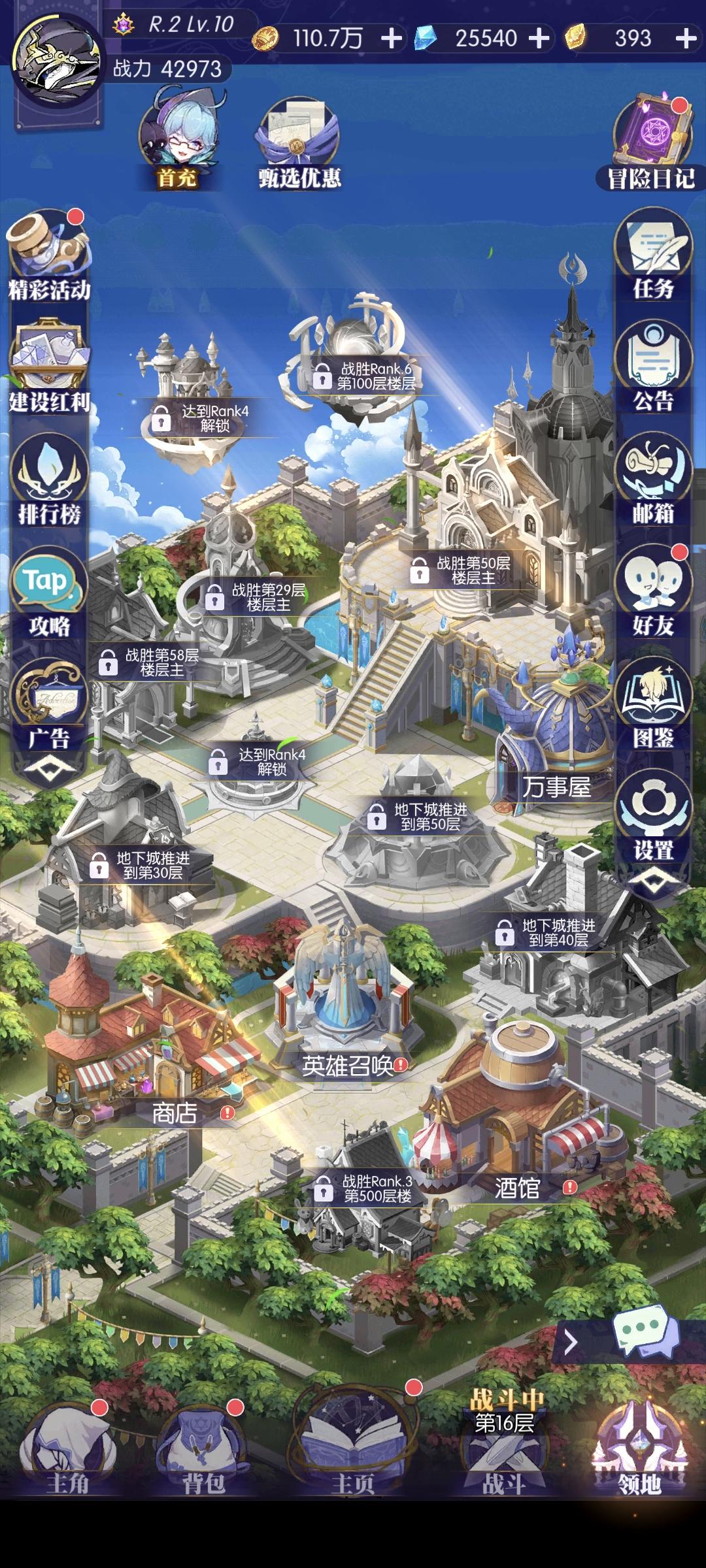 尽量第一天推楼到rank2的350层,350层之后楼层每分钟获取经验不会变化了;如果推不到就去睡觉。