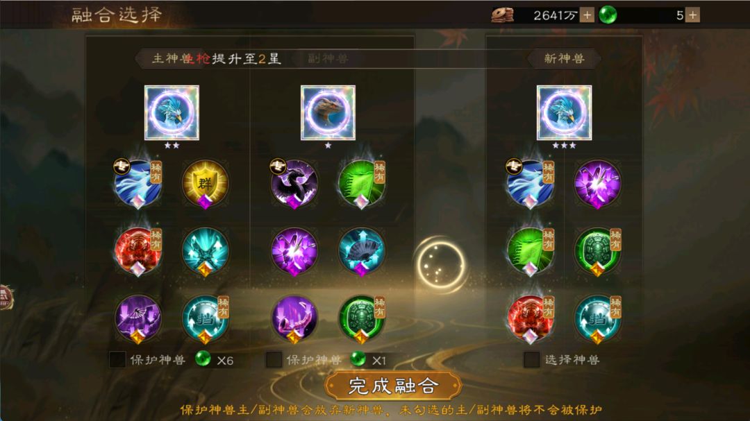 (5)狗粮2号关键技能+1个果子得2号六星狗粮,与7星本体融合,得8星目标神兽(例-青鸟),此间有失败概率,样本有限暂不详;