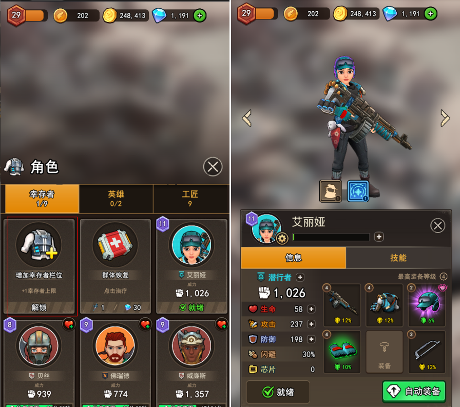 佣兵雇佣和培养:雇佣更多的佣兵,将制造出的多余装备给佣兵们穿戴,提高探险时的战斗力。