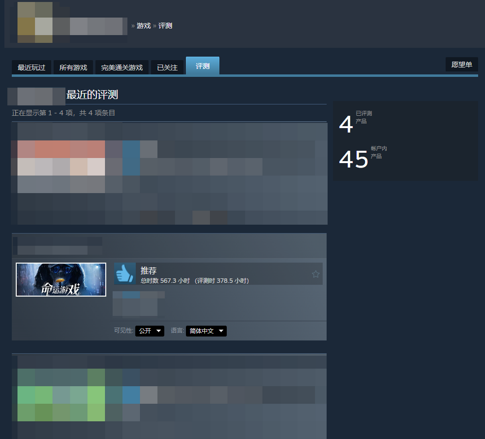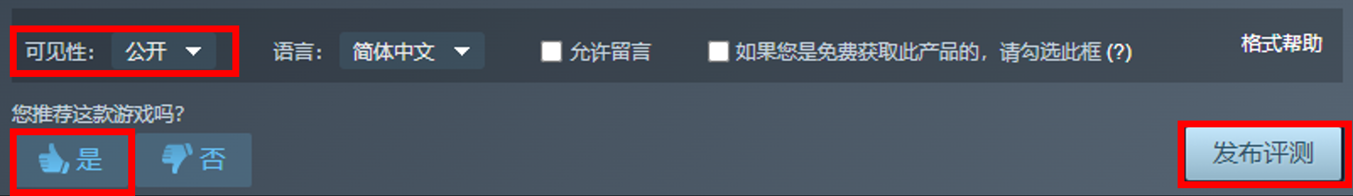 评论设置:可见性设置 - 公开;您是否推荐这款游戏