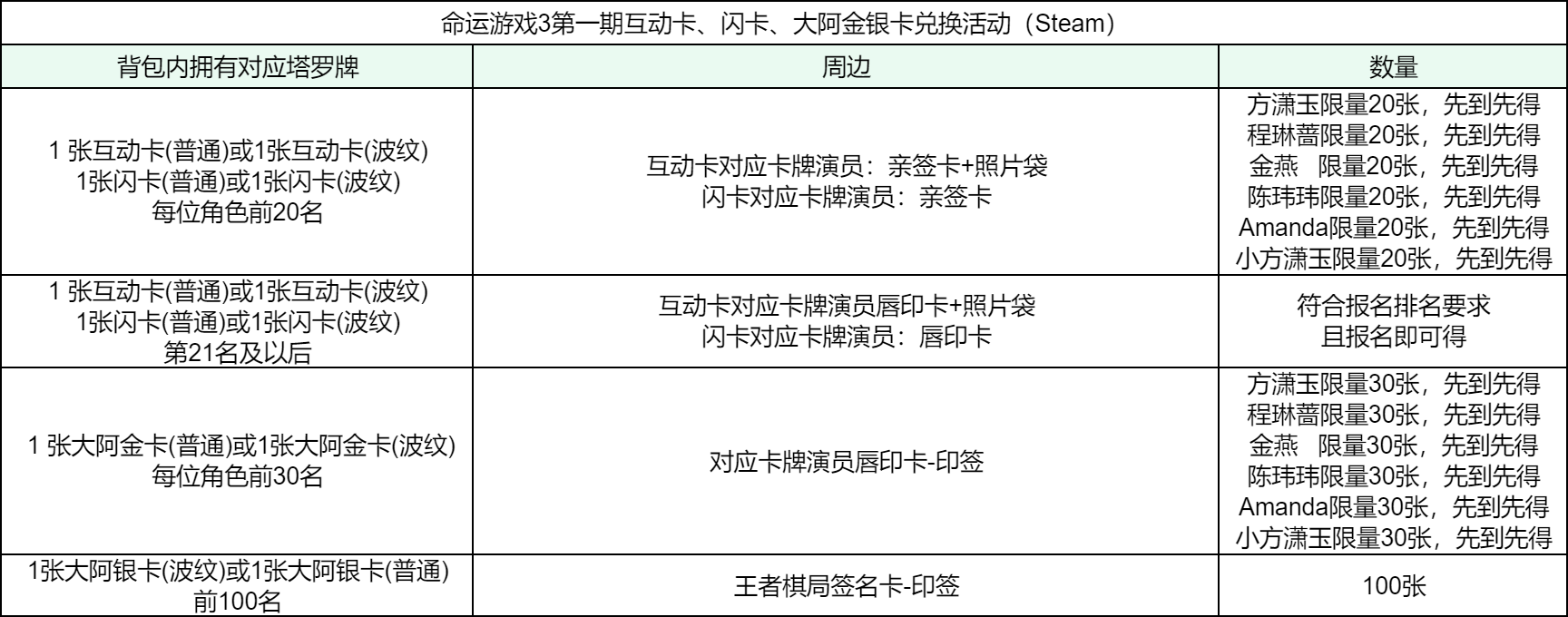 (3) 同个ID在《命运游戏3》的所有收集塔罗牌活动中只要符合兑换条件,均可同时报名参与。