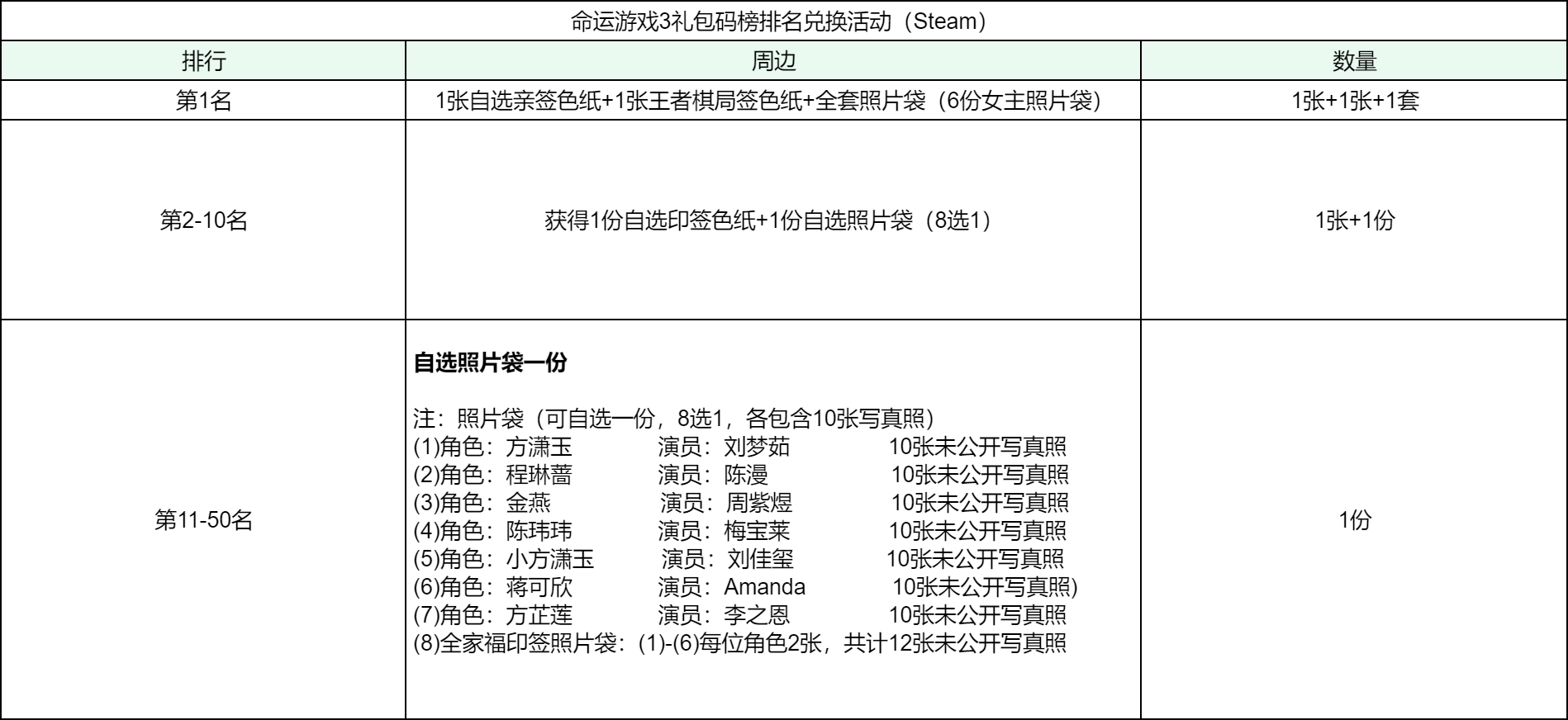 (6) 活动结束后统计中奖名单,中奖玩家【需要联系管理员提供榜单名称+排名+Steam ID+收货姓名、电话、详细地址】