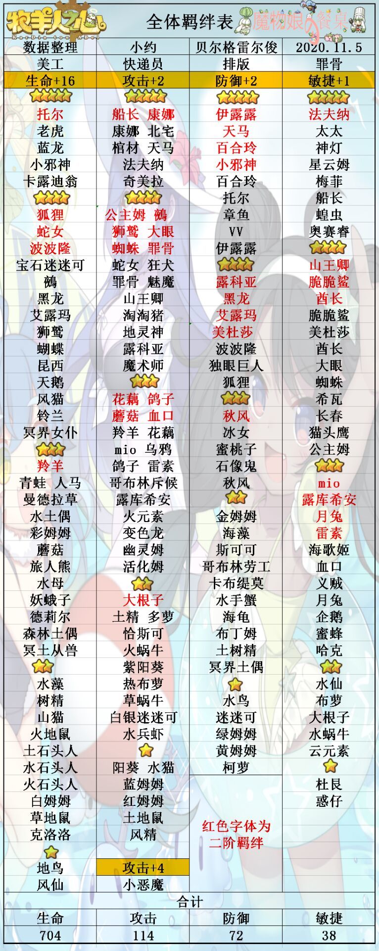 全体羁绊属性合计表