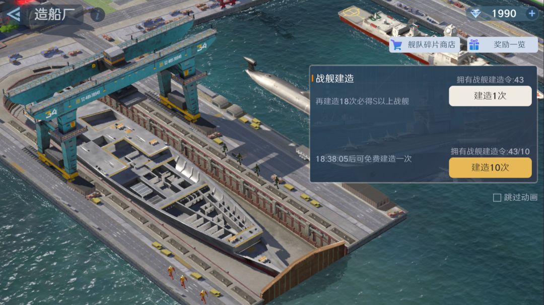 ①修复【造船厂】进行抽取。奖池丰富,每25抽内必得s级以上战舰。