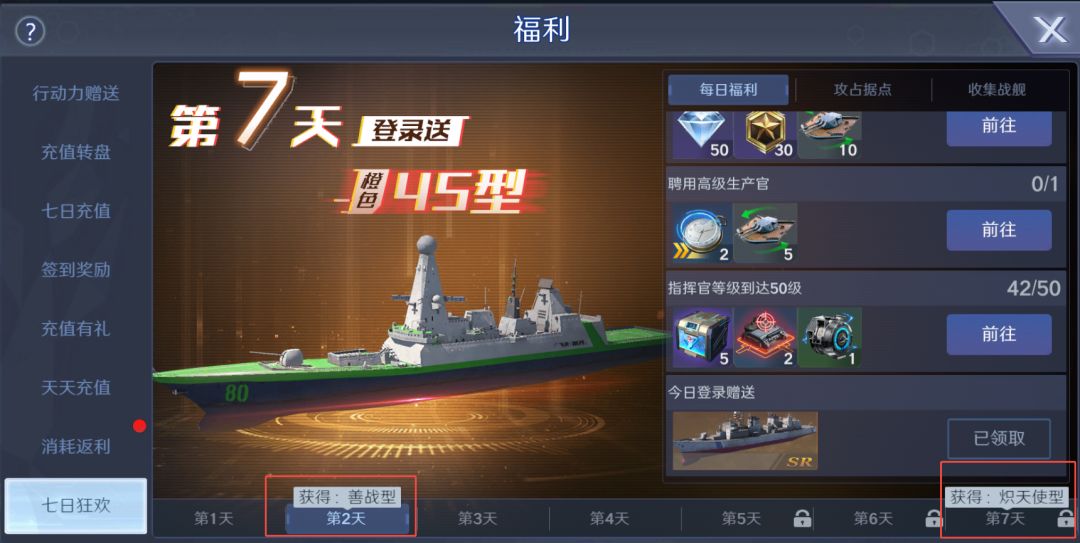 所幸在初前期我们会获补到许多新舰:猎人级驱逐舰以及优秀舰长玛德琳,和【七日狂欢】中签到即可领取sr级善战型&炽天使型战舰,快速补充我们的即战力,助力我们的前期发展!