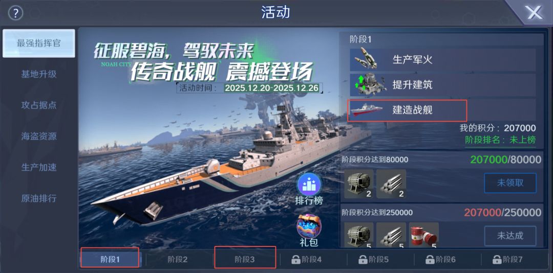 露露小建议:可以搭配着【最强指挥官】活动:第一和第三阶段需要建造战舰提升排名,此时攒够大量战舰建造令既可以以十连抽取保底高阶战舰,又可以获得额外奖励;