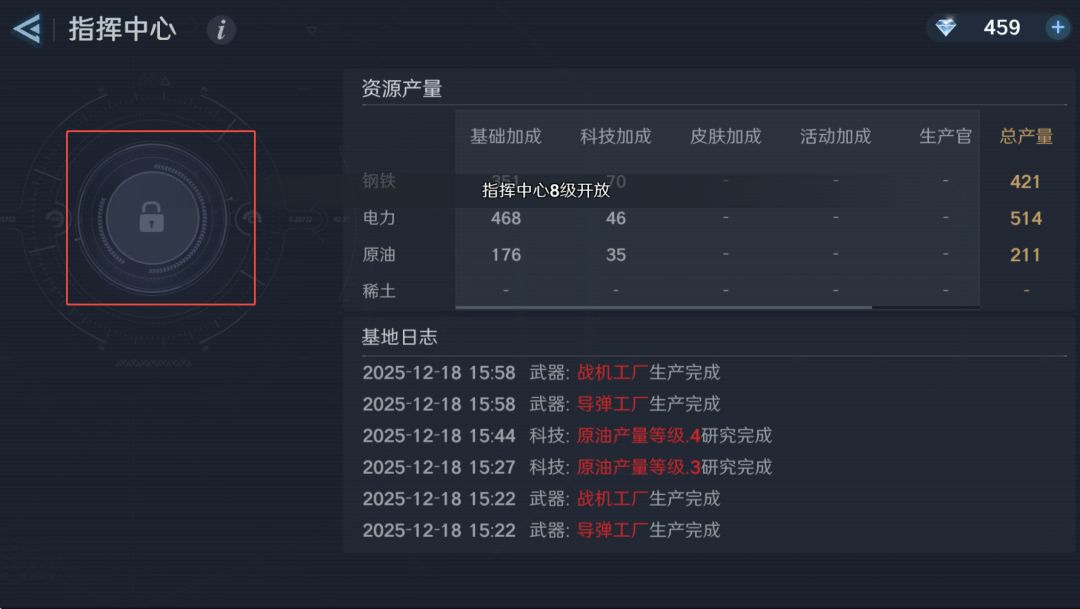 3.图中左侧尚未解锁的正是“生产官”席位(指挥中心达到8级即可开放)。
