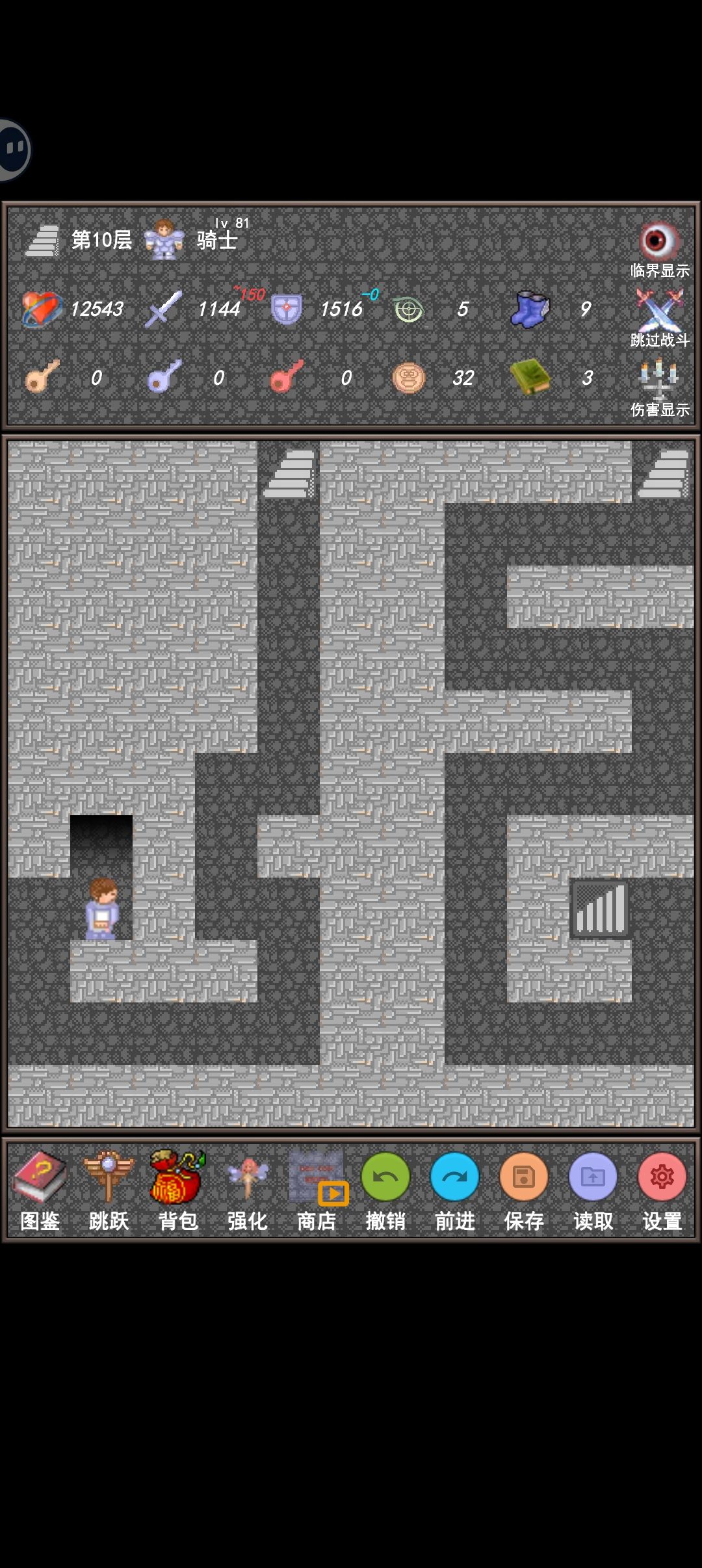 有需要的可以按照截图加点(因为新新魔塔超过 10 万点的数值显示不出来,所以骑士截图左上角生命值少显示了个数)