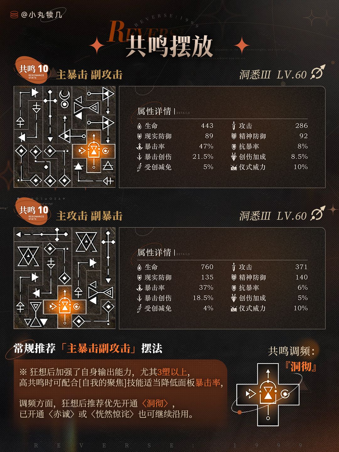 ※共鸣10『主暴击副攻击』摆法: