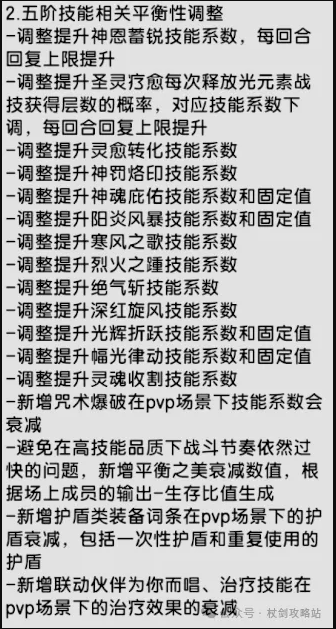 注意:本次五转技能调整,还在六转技能测试服调整,可能不是最终改动数据,所以大家不要过于担心,后续应该还会根据测试情况再做进一步的调整。以下是公告正文: