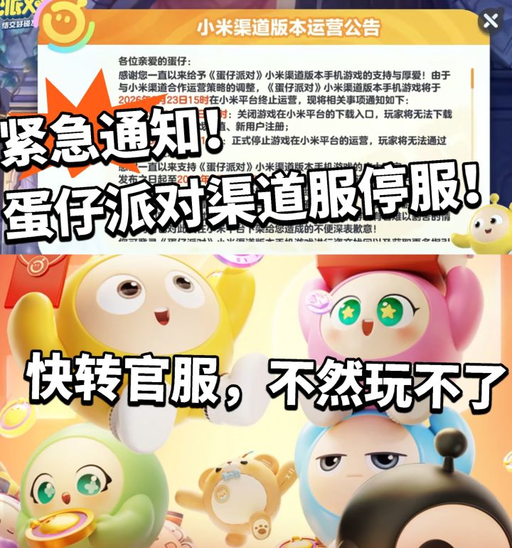 大的来了家人们!就在刚刚 蛋仔派对 官宣了小米渠道服要停服的消息。 消息一出来,大家都吵疯了!