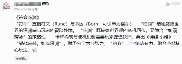 说到取名就想到之前在小黑盒看到的“国外开发者请中国玩家赐名”系列,一个好的游戏名既要直观体现游戏玩法,还要有趣独特,对于想汉化的国外游戏取一个好的中文名就更难了。而我之前看到一个魔法符文题材的肉鸽游戏《Runeborn》,开发者第一次向玩家求助起名,不过评论区的画风好像逐渐跑偏~
