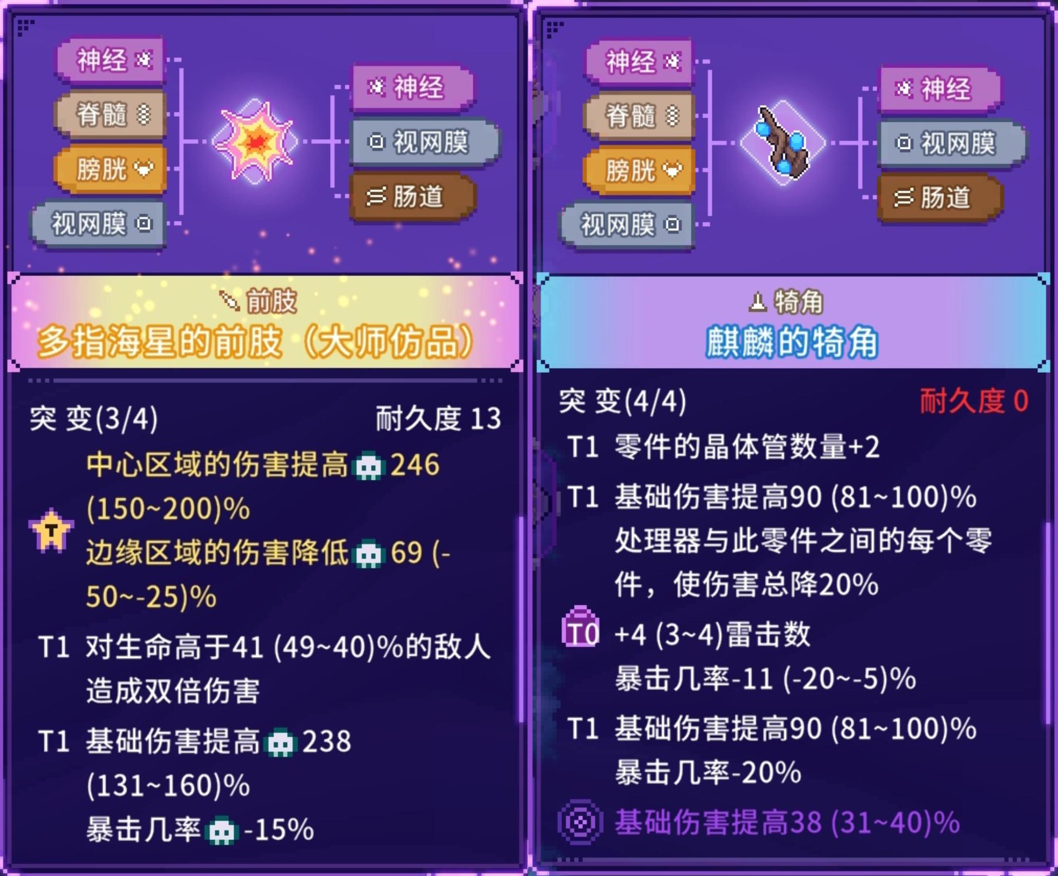 作为伤害核心的劳拉的前肢(大师)仿品可换成海星的前肢(大师)仿品,(稍微增加延迟,伤害上限更高),也可以试一下其他前肢