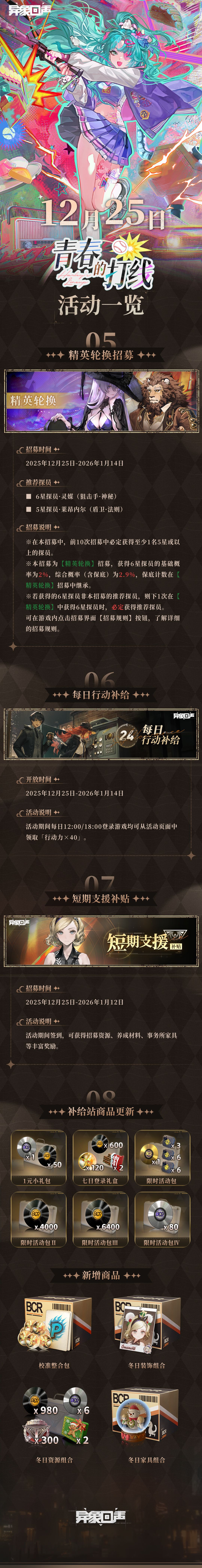 《异象回声》将于12月25日更新「青春的打线」版本!本次调查的情报档案已由特别调查科探员整理并放在科长的办公桌上,请科长及时查阅!