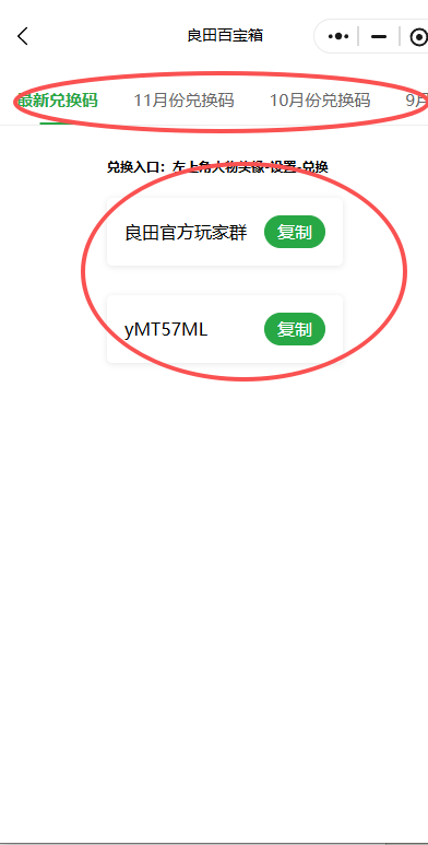 兑换码的来源,推荐良田百宝箱,手机登录的话,是可以直接复制的。如果电脑可以登录的话,下列是我自己整理的截止到11月的所有兑换码,比百宝箱略全一些。