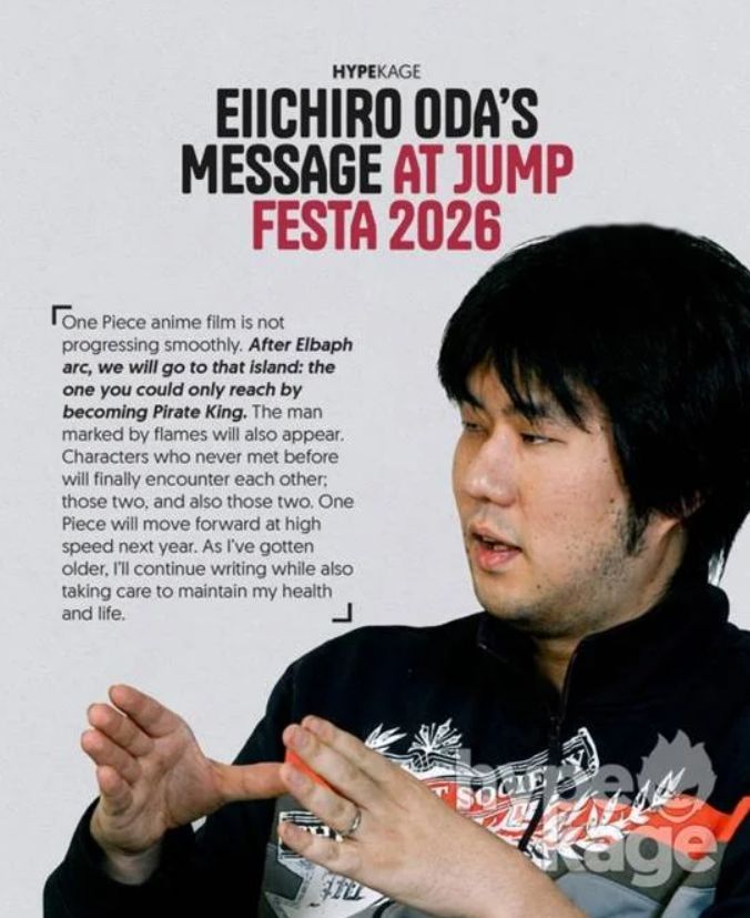 尾田透露新剧场版制作进展不顺,同时剧透剧情:艾尔巴夫篇后,草帽团将前往唯有海贼王能抵达的岛屿,“被火焰标记的男人” 将登场,从未谋面的角色终将相遇。他表示2026年剧情将高速推进,自己会在坚持创作的同时兼顾健康与生活。