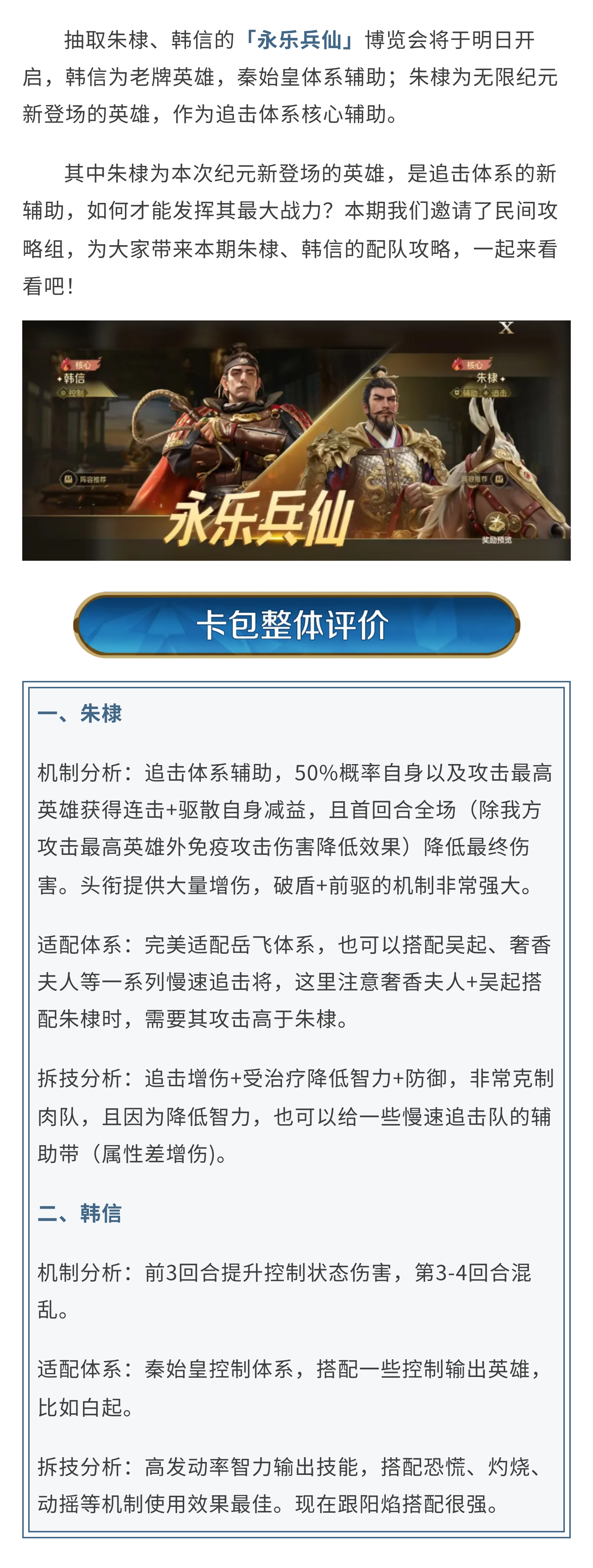 攻略分享丨「永乐兵仙」博览会:朱棣、韩信配队攻略分享