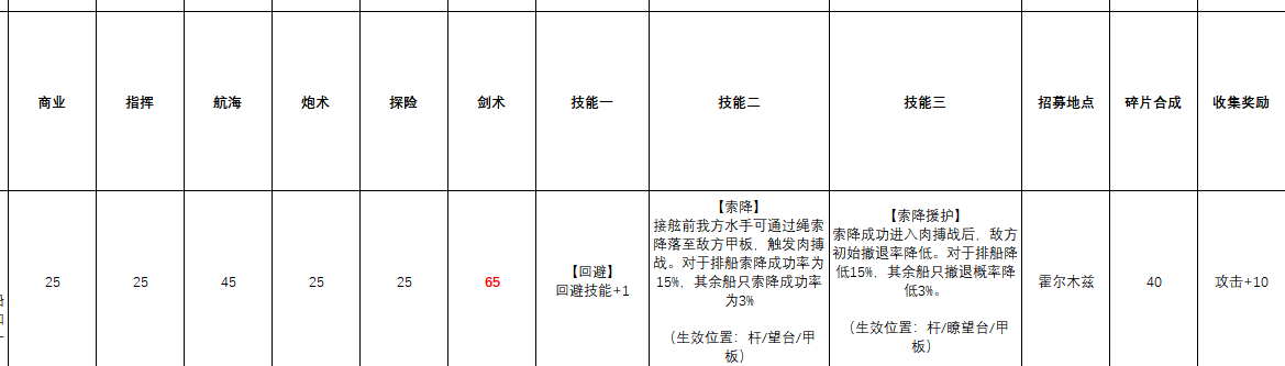 索降援护:索降成功进入肉搏战后,敌方初始撤退率降低。对于排船降低15%,其余船只撤退概率降低3%。生效位置:桅杆、瞭望台、甲板