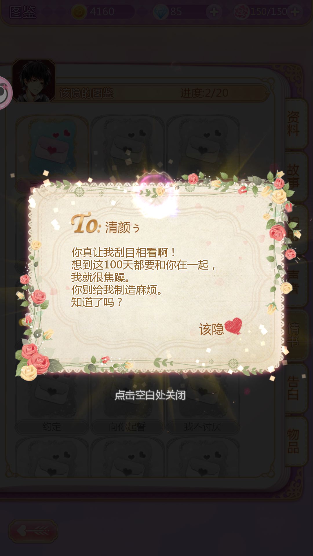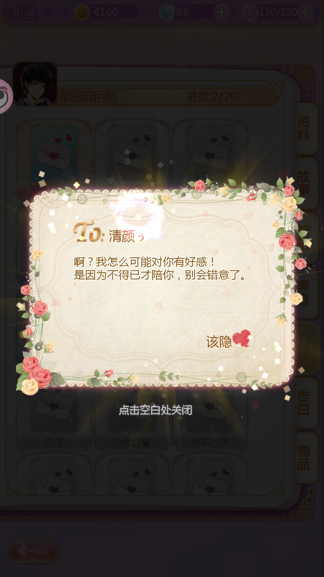 每次看到乙女游戏总想起这个,今天翻来翻去,翻到了2017年时候的截图,该隐的人设真的很傲娇,一副我喜欢你但就是别别扭扭的感觉。当时为了这个游戏花了不少银子,也算是投入了很多心血,现在看什么乙女游戏,都感觉比不过这个“白月光”了。