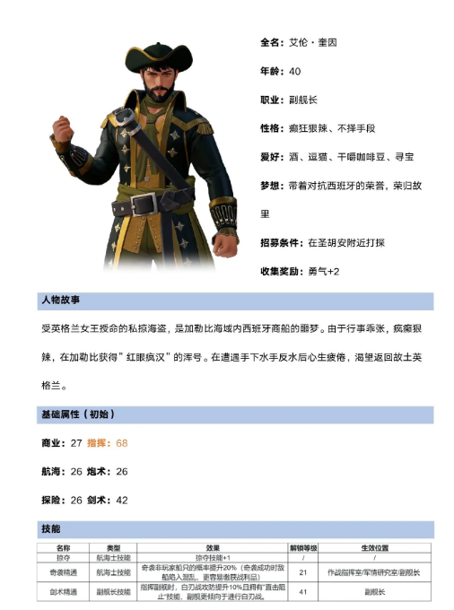 这样商业系船长玩家,就不用担心为什么指挥系航海士都是战斗的,我们商人什么时候站起来!(拿到他之后替换之前的其他副舰长,不用担心货仓加成比例降低。