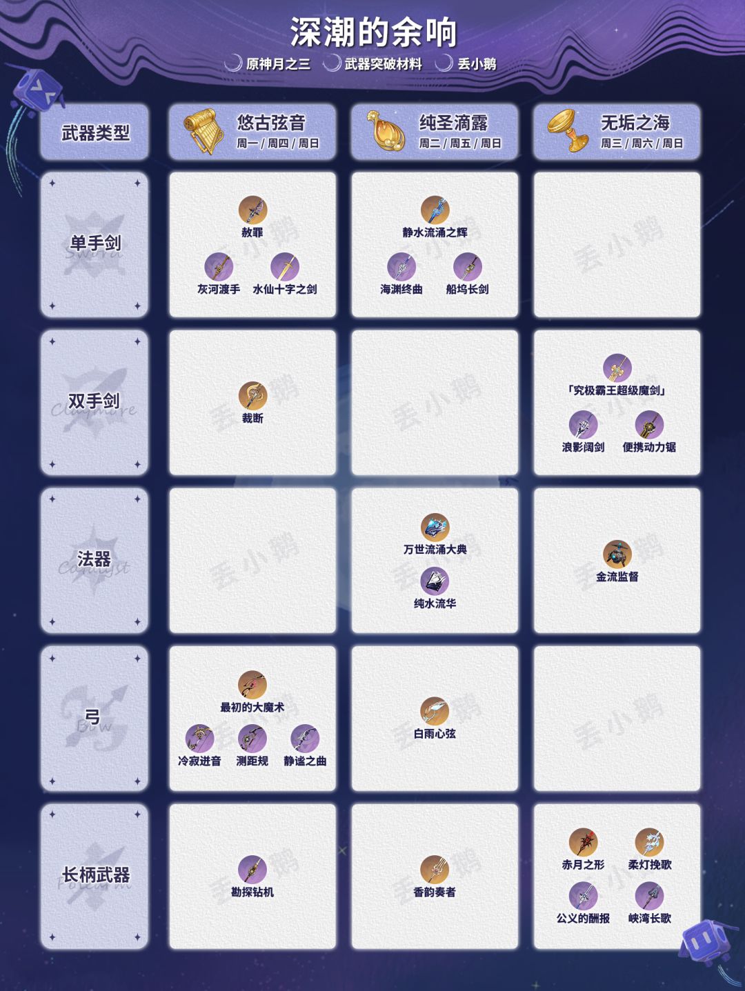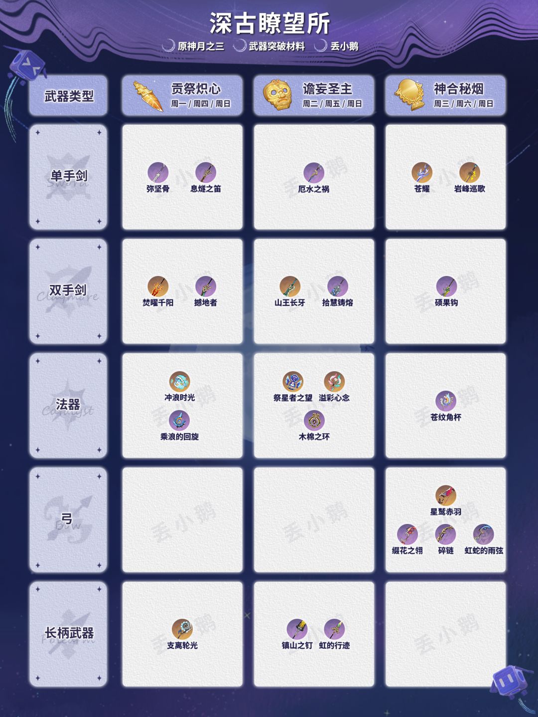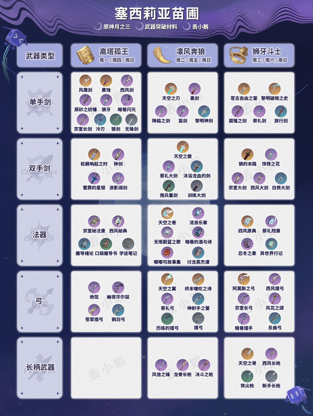 为你带来【原神月之三】全武器突破材料~