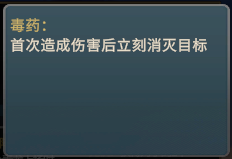 ②首次。毒药会在第1次造成伤害时的目标身上触发。如李白召唤剑气打在具有不屈的相柳身上,相柳首次造成伤害的目标为李白的剑意,此时相柳对剑意造成伤害,触发毒药,后续虽然李白自身仍然会攻击相柳,但此时的相柳已经没有毒药效果了。