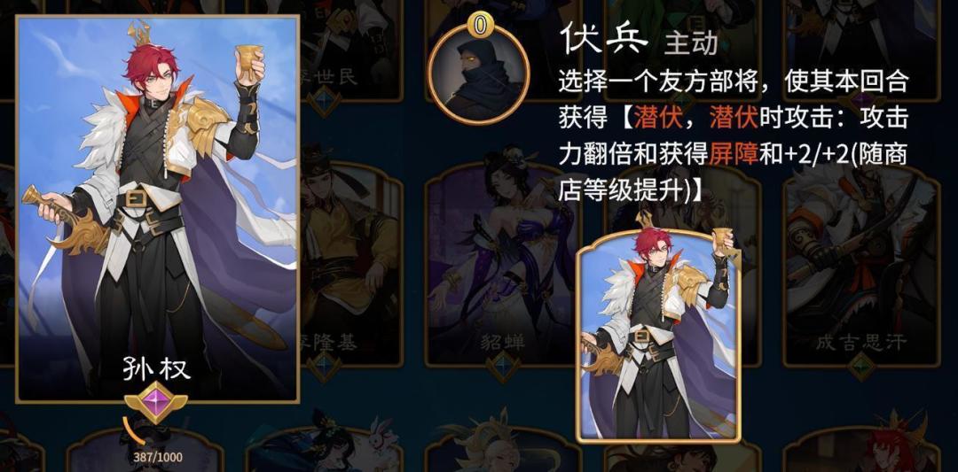 特定英雄强势单卡:孙权、成吉思汗、吕布、太平公主、花木兰、刘婵、妲己、诸葛亮(都 是可以帮助卡牌叠属性的英雄,拿了蜀卒的也可以拿)