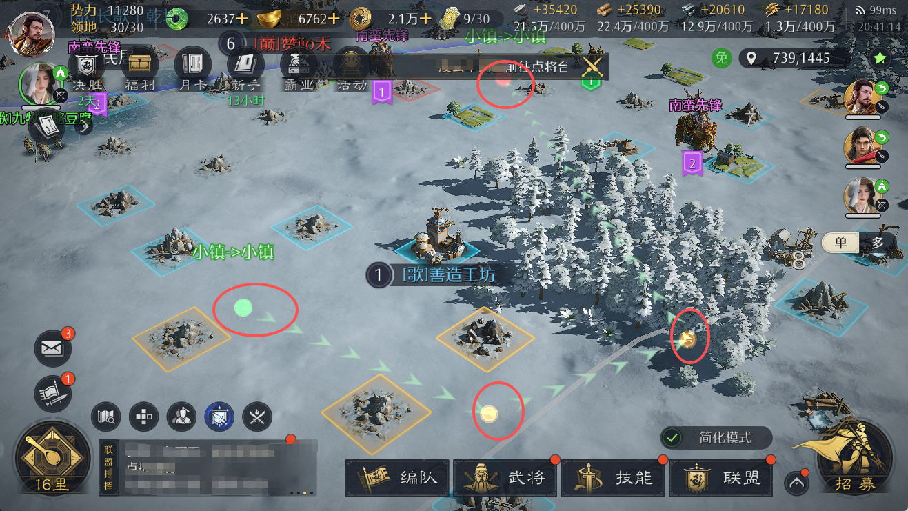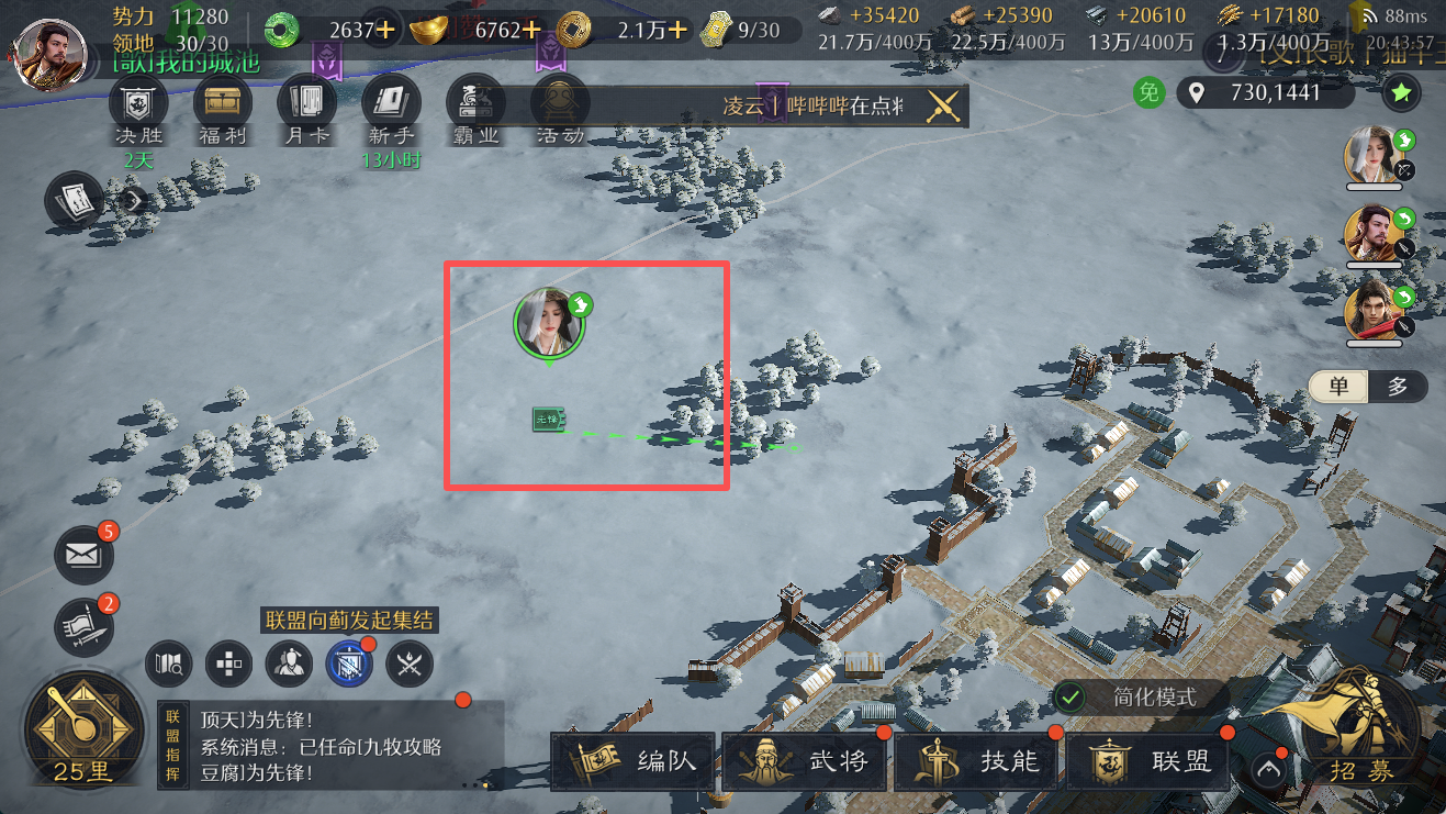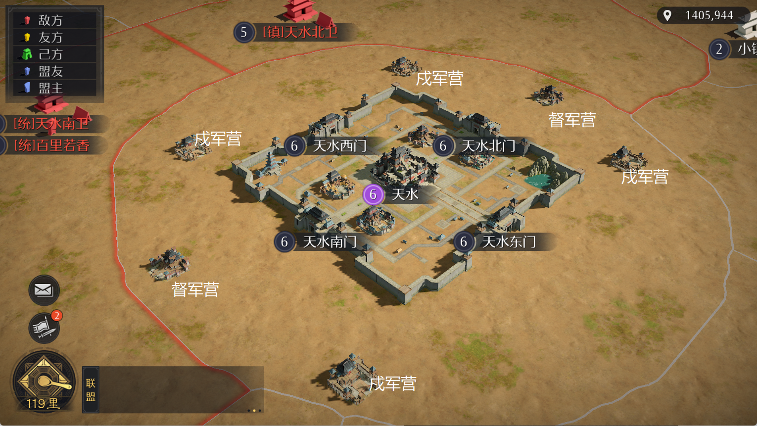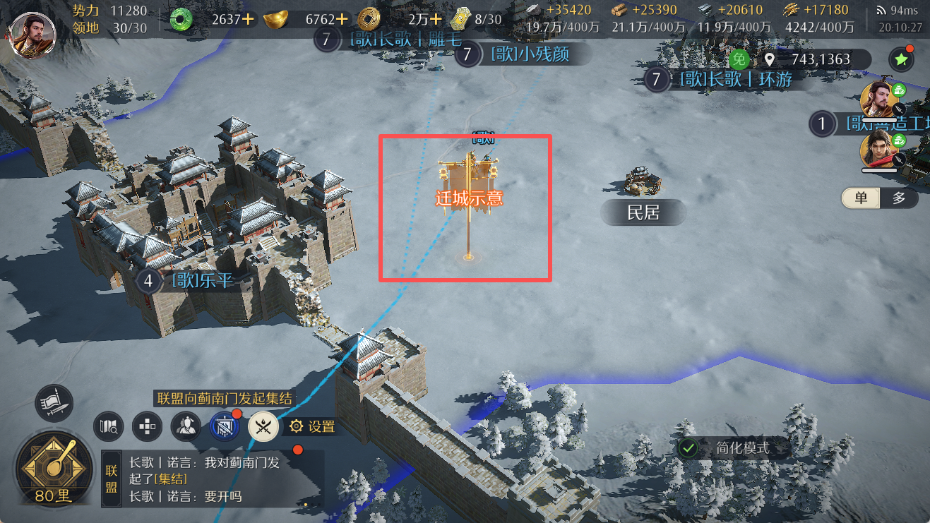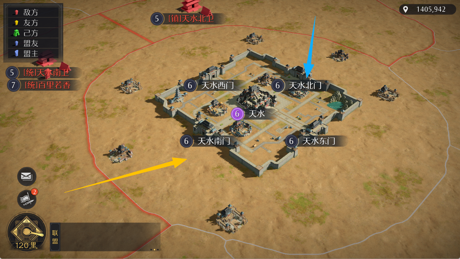 为了顺利向前推进战线,我们要号召盟友统一往前线迁城,方便攻打后续城池时能够快速抵达战线。