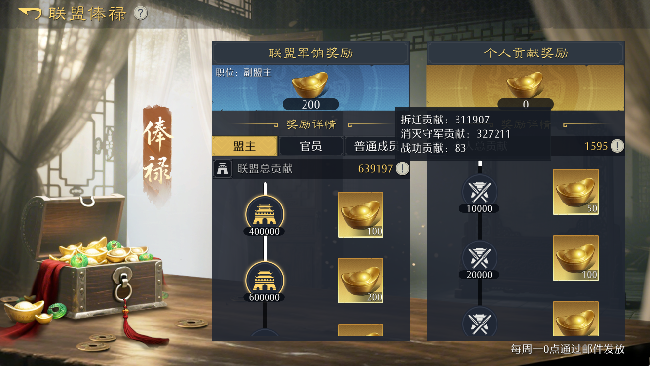 根据联盟活跃度,管理可以获得拥有额外的俸禄奖励,所以做好一个联盟,不仅可以获得体验上的成就感,还有实打实的金锭收入。