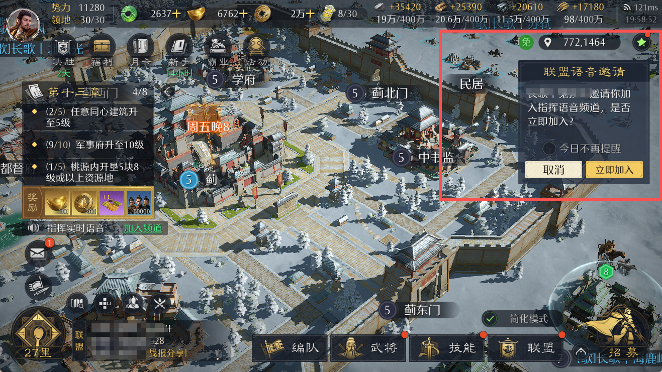 开启语音后,盟友会收到加入提示。加入联盟语音可以更好地配合行动。