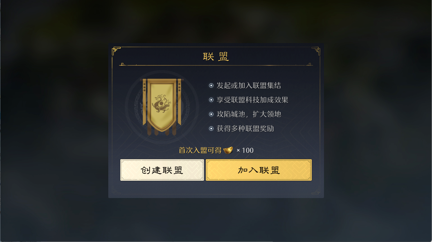 主城等级达到4级后,即可消耗100金锭创建联盟。