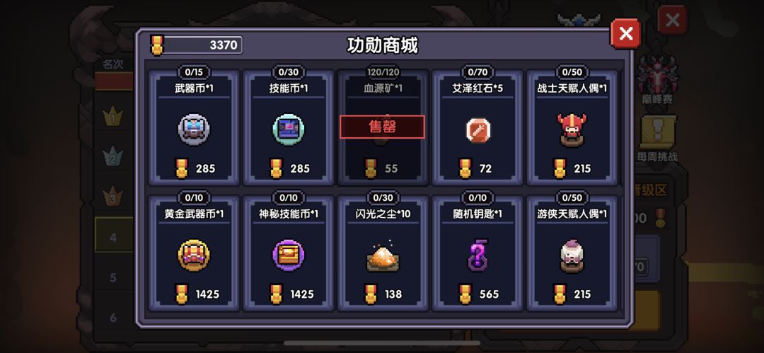 1.竞技场的功勋商城:做为每周最稳定的一种方式入手难度极低,只要完成每周的竞技场任务肯定是可以购买全部上限的血原矿,不要太爽。