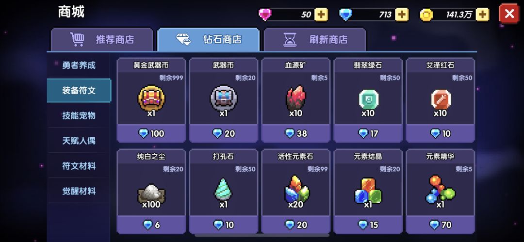 4.钻石商店:这里的物品都是不打折的,如非必要不推荐购买。土豪随意