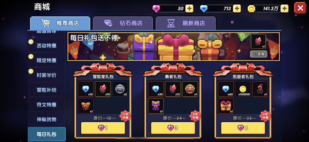 1.首推每日礼包中的前两个,每天都买的话性价比之王