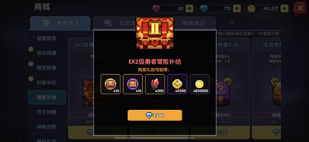 2.买过成长基金的小伙伴都有一定的钻石(一共好像7000左右的样子),这些钻石可以购置一些性价比比较高的冒险者补给。除了有丰厚的血原矿之外还有武器和技能币,为70武器保底活动做好铺垫,该有小符文碎片和金钱,都是成长非常必须的买了不会浪费的资源,
