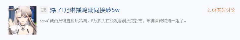 乃琳直播《鸣潮》爆火,同接峰值破5万!