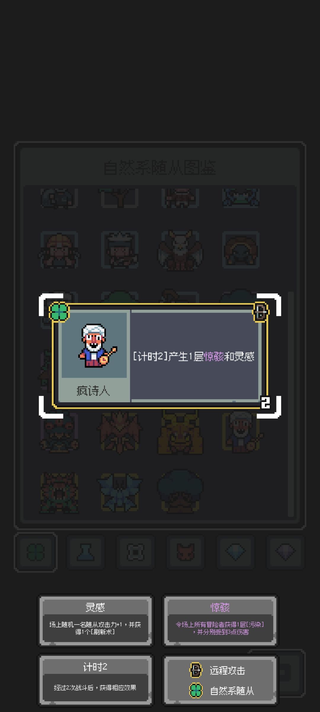 前期拿魔脚,必拿专属宝物臭袜子。另外,需要注意的是,前期最好是搭配灵感和惊骇体系牌来玩,最理想情况是45层之前达成灵感和惊骇双99层,因为这两种状态每回合只掉一层,所以这个条件不是很难。当惊骇有99层之后,宝物基因窃取就可以偷到大量攻击力了,加快叠加攻击力数值的速度,同时惊骇也可以让前期打怪更舒适,灵感提供的大量刷新也便于刷牌。女王的获取途径较多,可以灵活借助宝物,但要注意,最好30层之前拿到,越早越好,慢慢配合臭袜子提供的全面绽放效果养起来。至于如果有其他可以给女王加攻击的牌,也可以都揣着慢慢等机会删掉就好。经过我多次实测,可以稳定一波击杀99层BOSS。