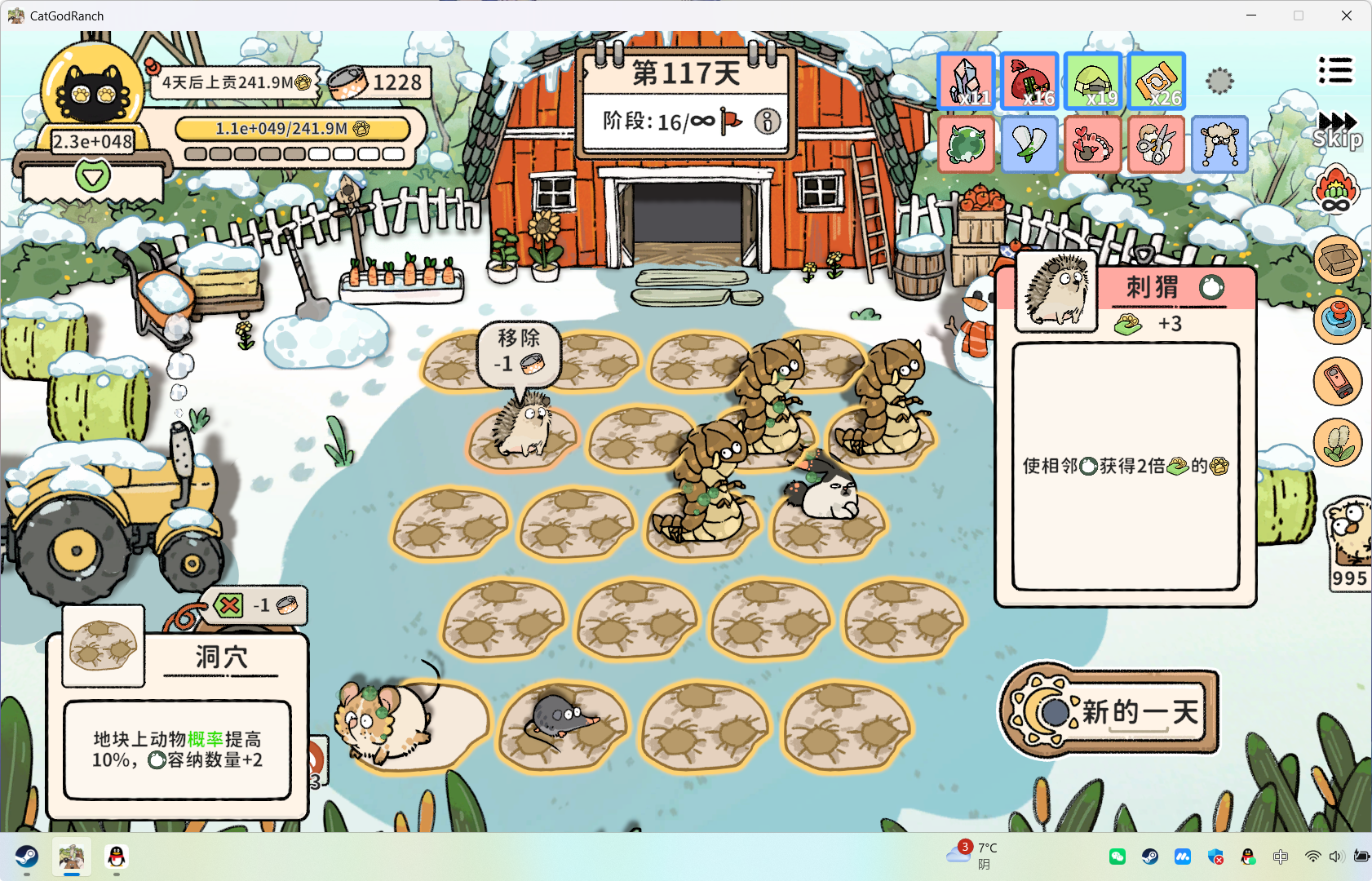 刺猬:其额外贡献是场上所有鼠兔基础贡献之和的2倍。
